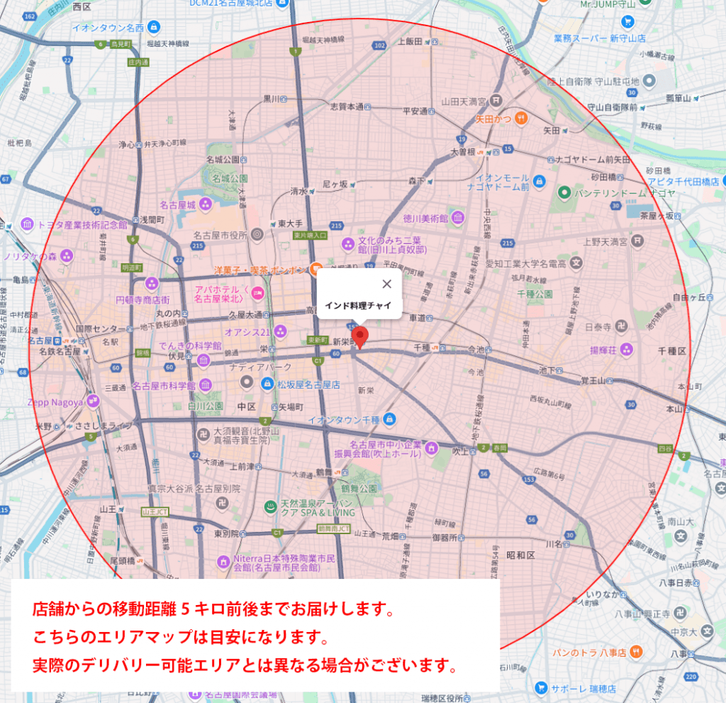 【配達可能エリア】店舗から移動距離5km以内
